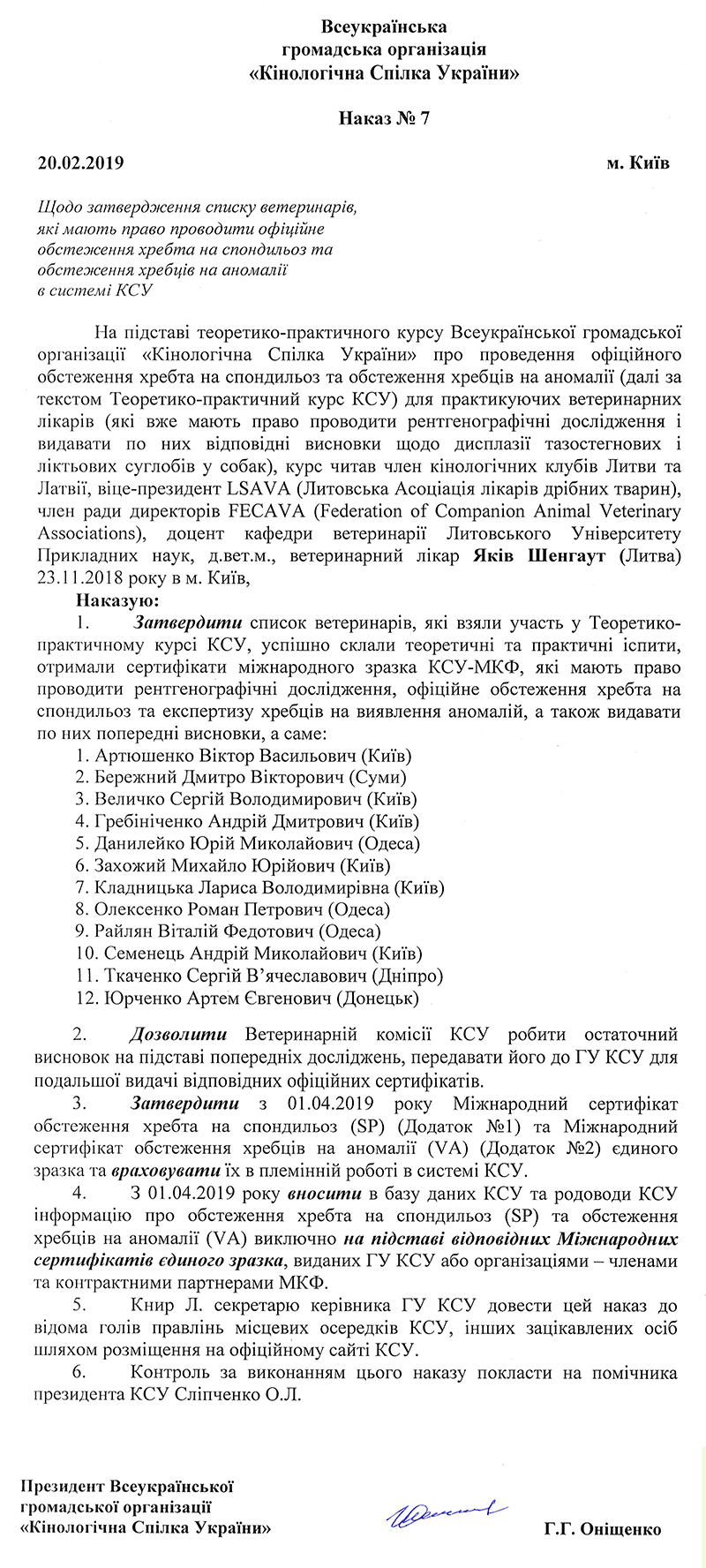 ПОЛОЖЕННЯ КСУ про проведення офіційного обстеження хребта собак на спондильоз (SP)