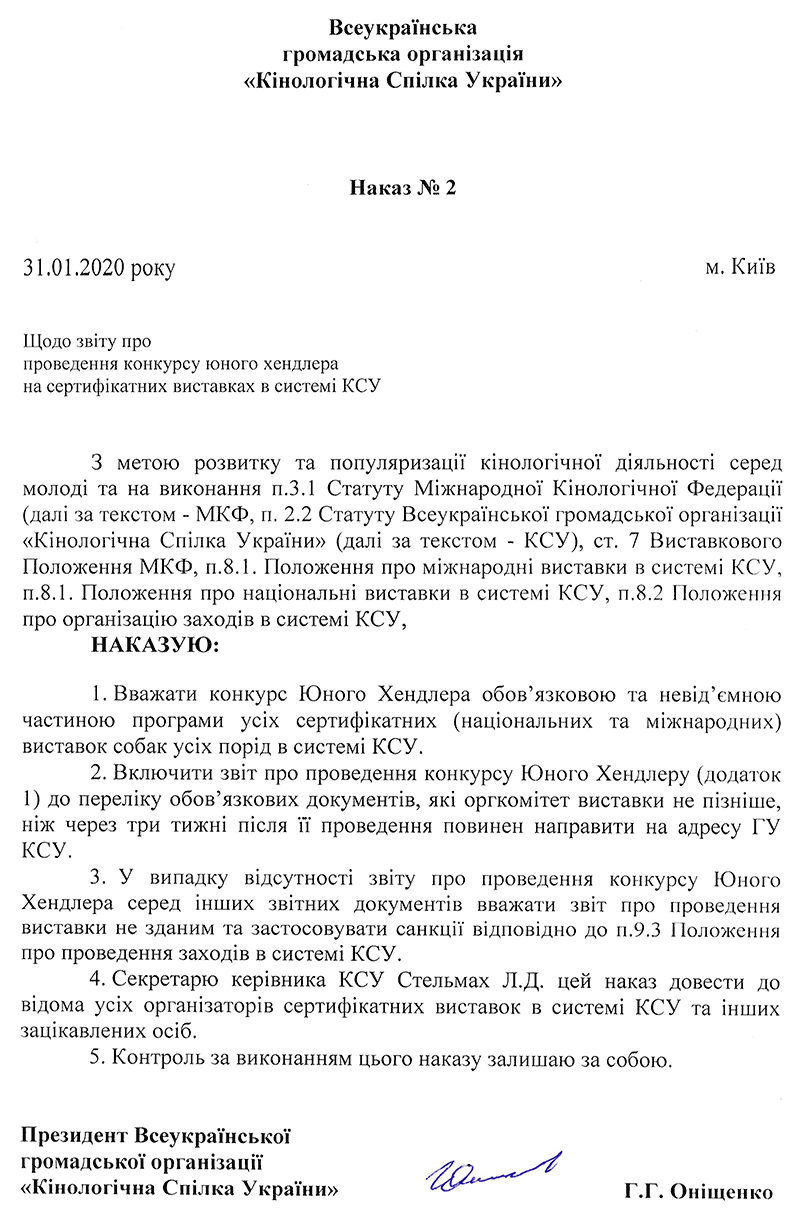 НАКАЗИ КІНОЛОГІЧНОЇ СПІЛКИ УКРАЇНИ