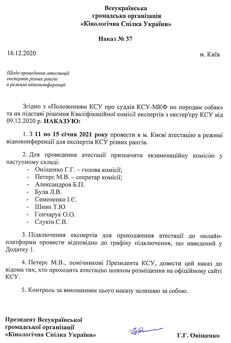 НАКАЗИ КІНОЛОГІЧНОЇ СПІЛКИ УКРАЇНИ