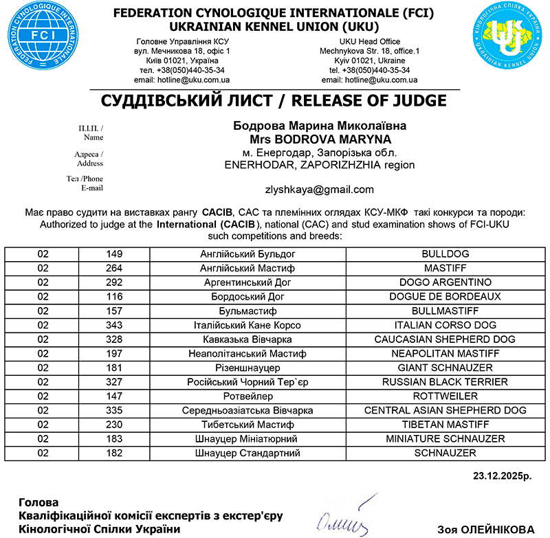 International FCI Judges / Міжнародні судді МКФ