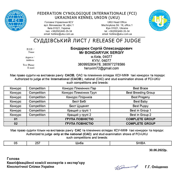 International FCI Judges / Міжнародні судді МКФ