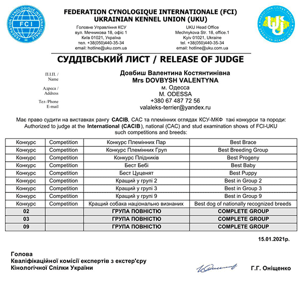 International FCI Judges / Міжнародні судді МКФ