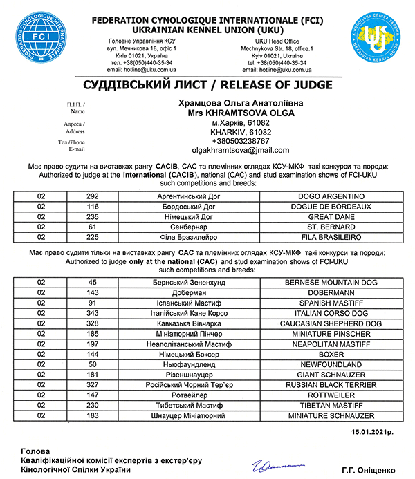 International FCI Judges / Міжнародні судді МКФ
