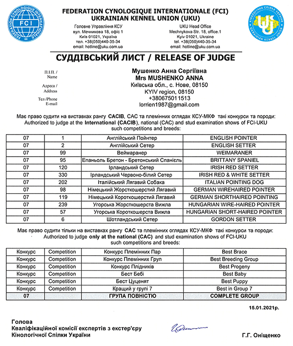 International FCI Judges / Міжнародні судді МКФ