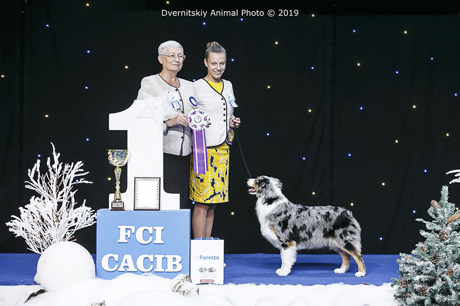 1st place LISOVA IRYNA (Zaporizhzhia, Ukraine) with an Australian Shepherd breed dog