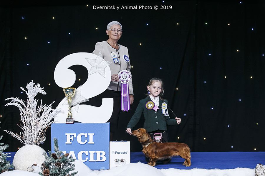 2nd place MARTYNCHUK HANNA (Gavrylivka, Ukraine) with a Dachshund Standard long-haired breed dog