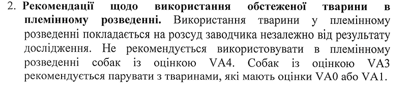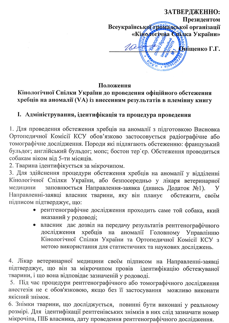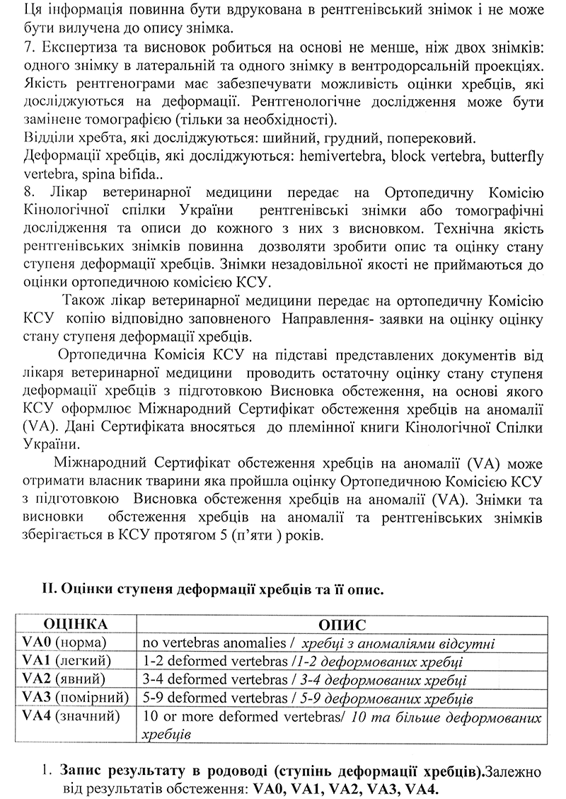 ПОЛОЖЕННЯ КСУ про проведення офіційного обстеження хребців на аномалії (VA) із внесенням результатів в племінну книгу.
